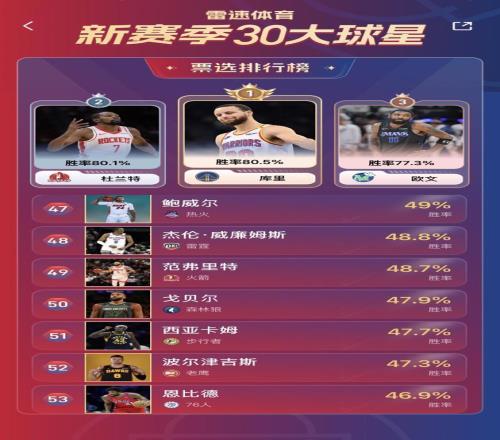 雷速体育10月15日宣 雷速NBA新赛季30大球星活动的第一阶段即将进入最终的尾声