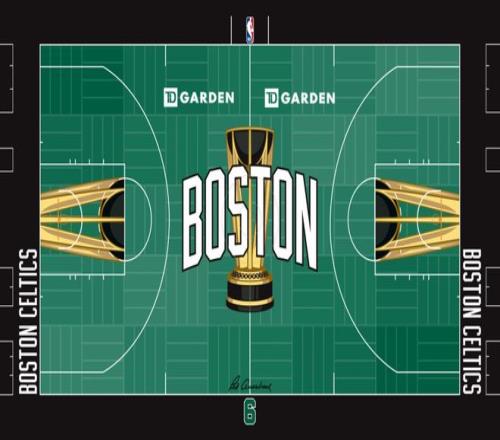 球队专属渐变色:每块球场都以主队核心颜色为基础打造渐变色。渐变角度根据球队所属分区(东部或西部)确定,为设计增添了一层微妙的结构感与象征意义。