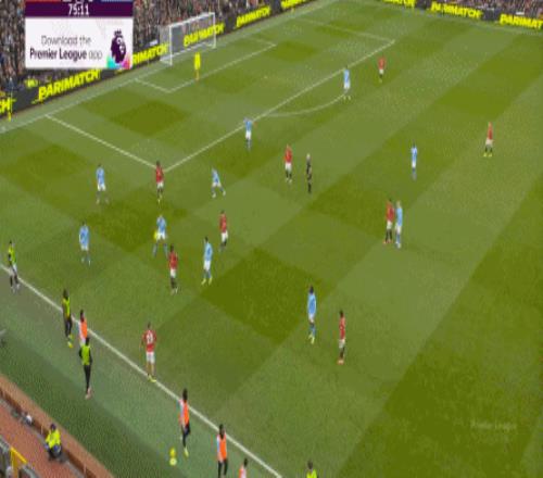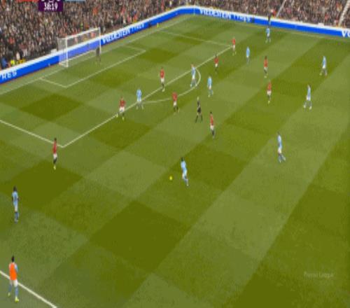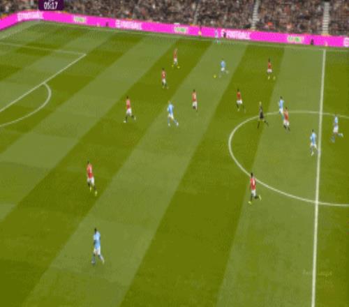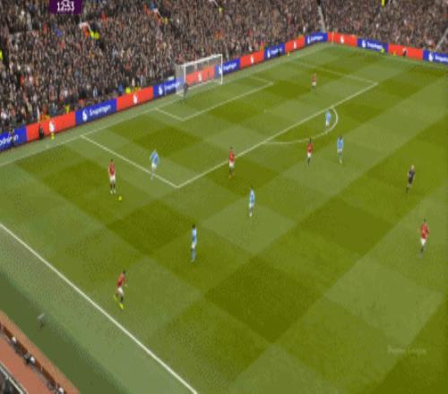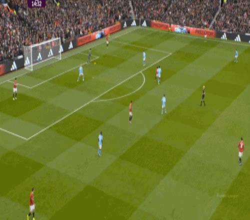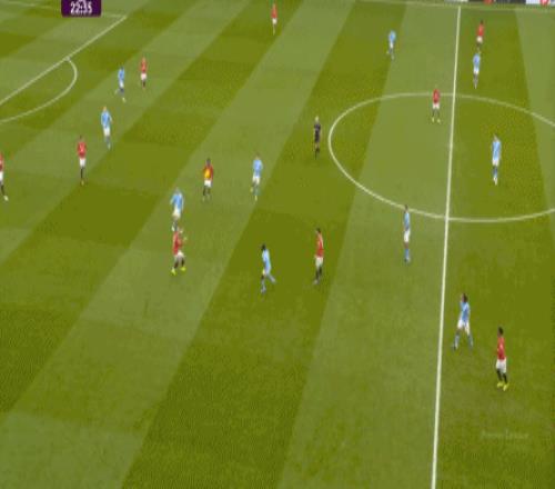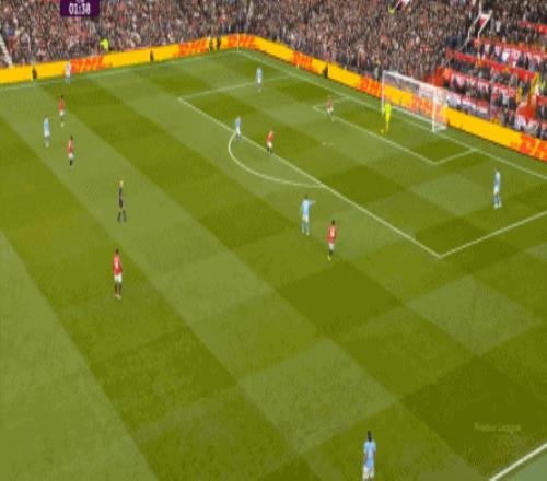 这是曼联在本赛季一直都有的赛程优势,之后也会延续下去,但你会看到,哪怕是在前场,在这次进攻里,布鲁诺甚至可以在禁区线前先想后传,曼城都没有及时给到压力: