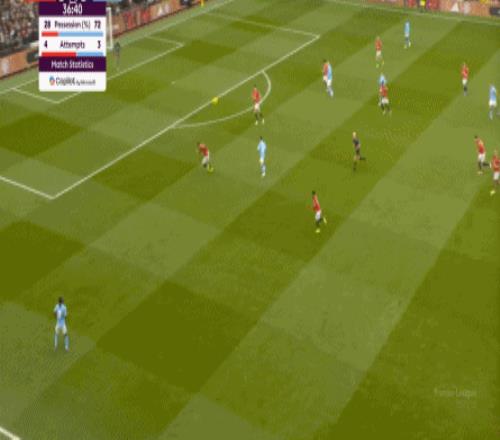塞门约和福登这两个左脚还未建立起关于右肋的默契,所以主攻左肋的贝尔纳多-席尔瓦只是在这次塞门约的传中里打出了机会: