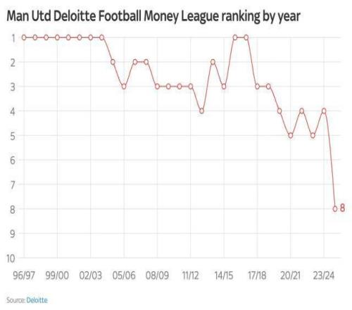 曼联在金钱联赛榜的下滑轨迹