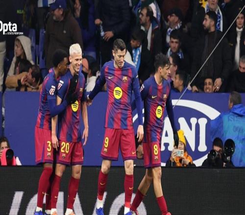 西甲第18轮,巴塞罗那客场2-0击败西班牙人,至此,巴萨已连续39场西甲比赛取得进球,为目前五大联赛现存最长纪录。此役客场对阵西班牙人,巴塞罗那凭借替补登场的奥尔莫和莱万各入一